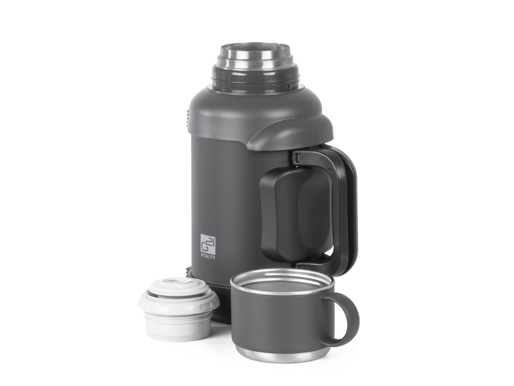 Vnitřní víčko termosky G21 slouží nejen jako spolehlivé těsnění, ale zároveň i jako pítko nebo nálevka pro pohodlné dávkování. Vnější víčko pak jednoduše využijete jako šikovný šálek, takže si nápoj vychutnáte kdykoliv a kdekoliv – bez hledání hrnku nebo kelímku.