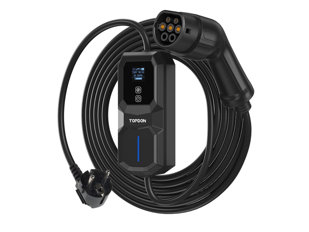 Mobilní nabíjecí stanice pro elektromobily TOPDON PulseQ AC Portable Výkon 3.7kW (230V/16A) • konektor IEC62196-2 Typ • dva režimy nabíjení (Plug & Play, Scheduled Charging) • odolnost IP65 • LCD displej • kompatibilní s většinou elektromobilů na trhu