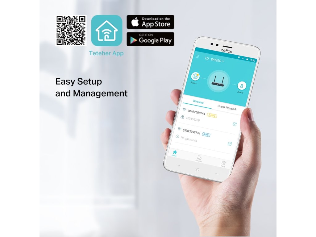 Všestranná konektivita – Modem/router TP-Link TD-W9960 je vybaven porty DSL a LAN/WAN a je tak plně kompatibilní se standardy VDSL2/ADSL2+/ADSL2/ADSL. A dokáže zpracovat i připojení ethernet kabelem