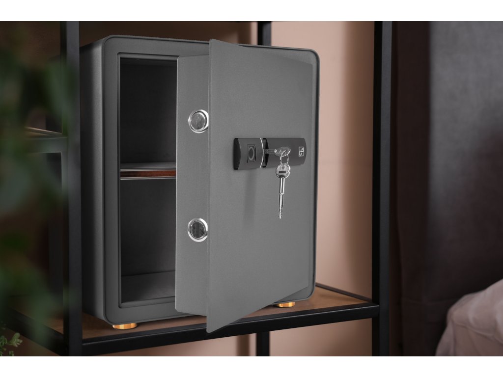 Když jde o bezpečnost, záleží na detailech. Ke svým cennostem se dostanete rychle, pohodlně, bezpečně a bez zbytečných hesel. Dvířka jsme osadili biometrickým zámkem pro až 29 uložených otisků prstů, který po přiložení prstu trezor během vteřiny otevře. A pokud se vybije baterie? Pak jednoduše použijete záložní bezpečnostní klíč, který jsme přidali do balení.