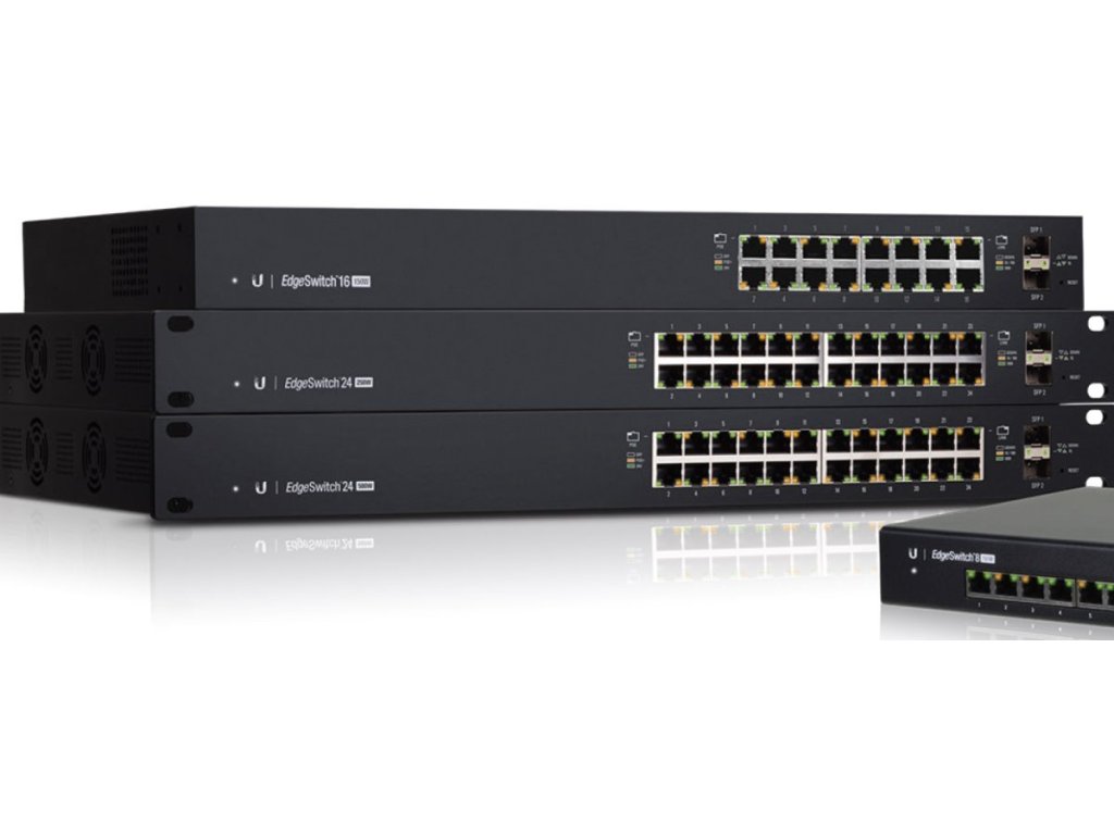 Gigabitový L3 PoE switch Ubiquiti EdgeSwitch ES-24-250W v 19" rackmount provedení s maximálním výkonem PoE napájení 250W.