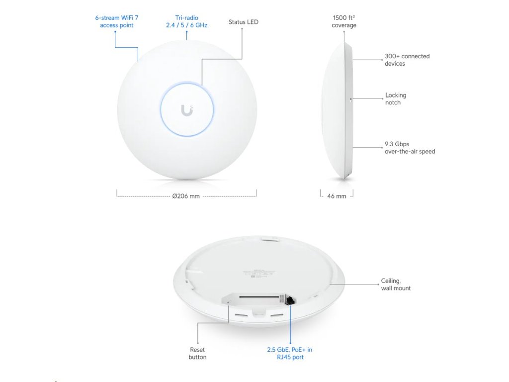 Ubiquiti Přístupový bod UniFi U7 Pro, WiFi 7 (2.4 + 5 + 6GHz), 4/6/5.8 dBi, PoE+-in