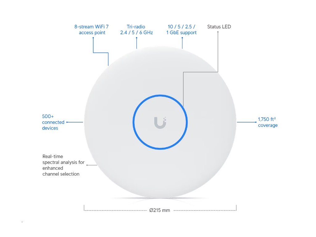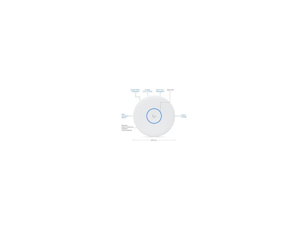 Ubiquiti U7-Pro-XGS, Ceiling-mounted 8-stream WiFi 7 AP with dedicated spectral scanning radio and 10/5/2.5/1 GbE, bílý