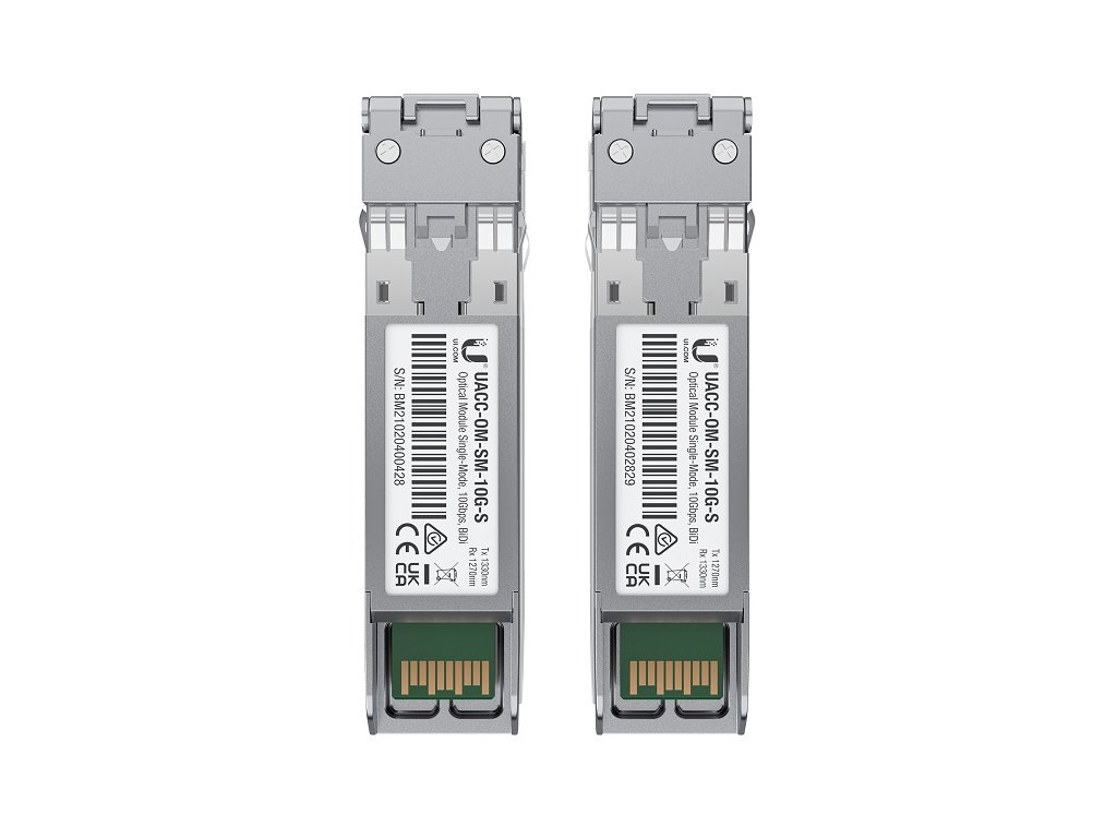 UACC-OM-SM-10G-S-2 původně UF-SM-10G-S je sada singlemode 10G SFP+ WDM modulů pro přenos dat pomocí jednoho vlákna s jedním LC konektorem. Vlnová délka (Tx a Rx) těchto modulů je 1270 a 1330nm a jsou vhodné pro spojení až na vzdálenost 10km. Moduly jsou kompatibilní se všemi Ubiquiti prvky se SFP+ porty. Balení obsahuje 2 kusy - 1 pár.