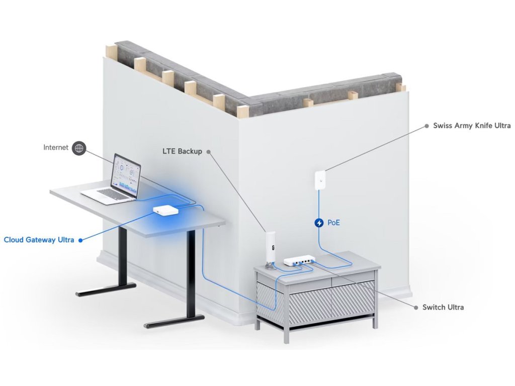 UCG-Ultra je všestranné zařízení ze série UniFi Cloud Gateway. Router disponuje (1) WAN 1/2.5Gbps portem a (4) LAN 1Gbps porty (1 s možností konfigurace LAN/WAN). Kompaktní, ale výkonné provedení tak podporuje funkci multi-WAN včetně možnosti load balancing, nechybí podpora IDS/IPS. Router má implementovanou podporu různých typů VPN, včetně site-to-site VPN.