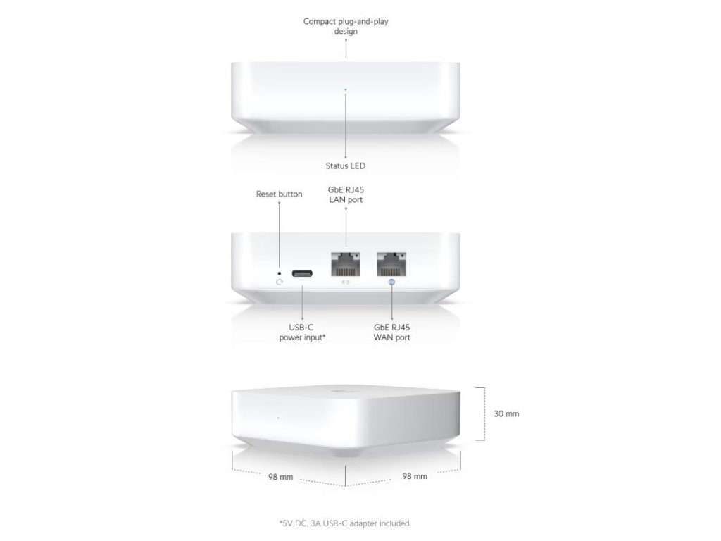 Ubiquiti UniFi Gateway Lite (UXG-Lite) - kompaktní brána s funkcí Routeru, WAN 1 GbE, 1x LAN 1 GbE, BT 5.1