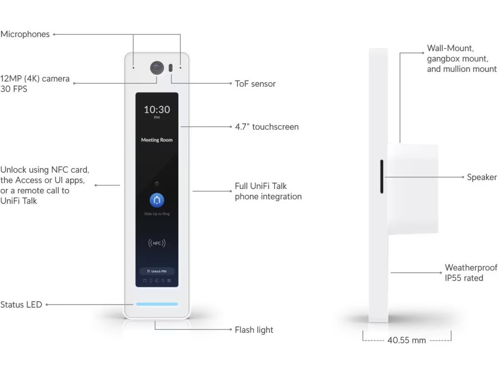 Ubiquiti UniFi Přístupová čtečka karet a intercom G2 Professional, NFC, PoE, PIN, LCD, IP55 rezistance, bílá