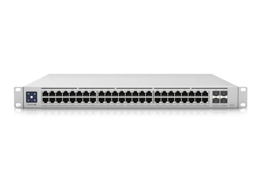 UniFi Switch Enterprise 48 PoE je spolehlivý managovatelný 2.5-Gigabitový L3 Switch s kapacitou přepínání 320 Gbps, (48) 2.5-Gigabit LAN porty a čtyřmi SFP+ (10Gbps) šachtami. Všechny ethernetové porty podporují 802.3af/at PoE-Out s výstupním výkonem 30W/port a celkovým PoE Budgetem 720 W. Switch má kromě standardní výbavy také 1,3" dotykovým displej pro poskytování informací o systému, teplotě, statistice portů, PoE napájení a mnoho dalšího. Switch lze napájet standardně přes 230V ale také přes UniFi SmartPower RPS, který slouží spíše k zálohování napájení v případě selhání interního zdroje.