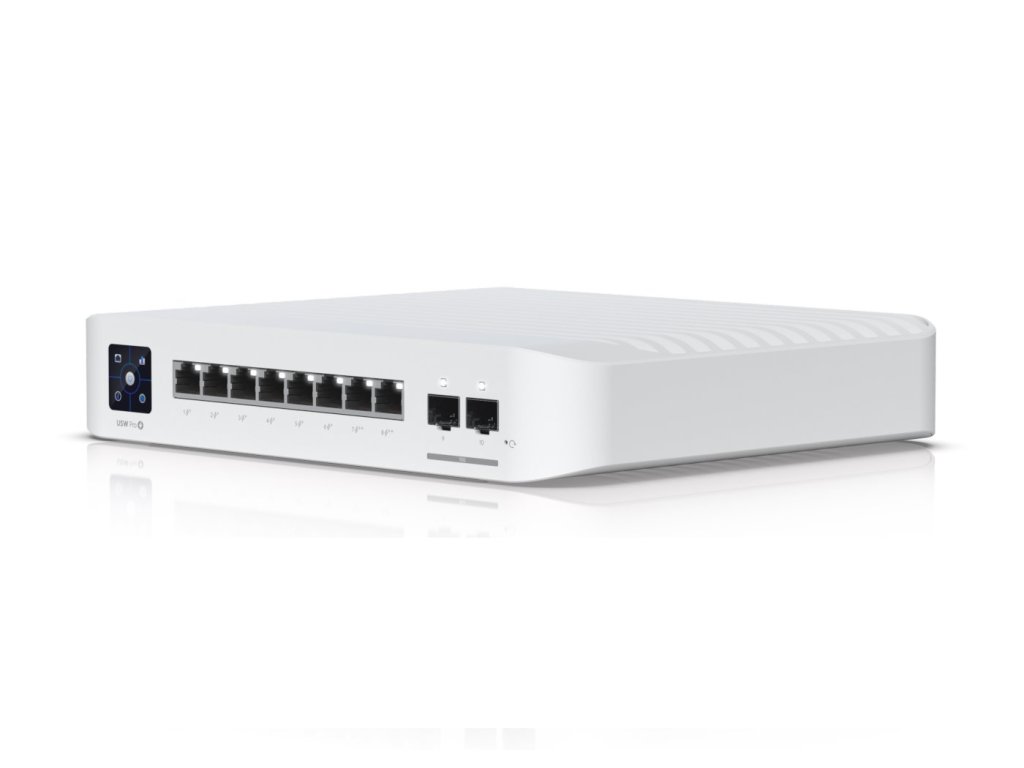 Ubiquiti USW-Pro-8-PoE je novým switchem, který nabízí až 6 POE/POE+ portů, schopných dodávat až 30 W, a také 2 POE++ porty, které dokážou dodávat až 60 W. Celkový maximální výstupní výkon je 120 W. Switch má 2 SFP+ porty s rychlostí až 10 Gb/s, což je ideální pro přenos i větších souborů. Na přední straně switche najdete dotykový ovládací panel i s AR nastavením. Switch lze také upevnit na zeď pomocí příslušného držáku.
