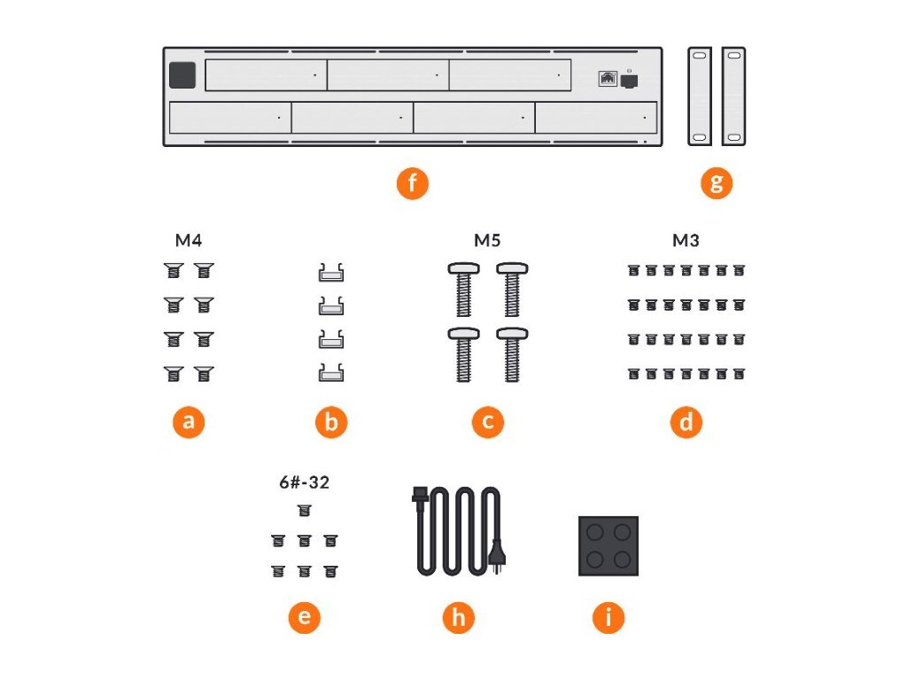 - Šroubky na přichycení do racku