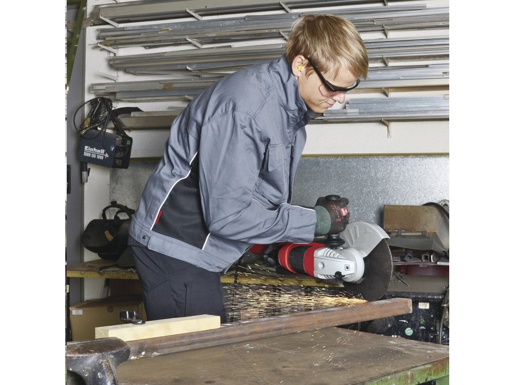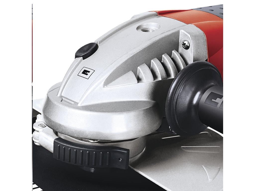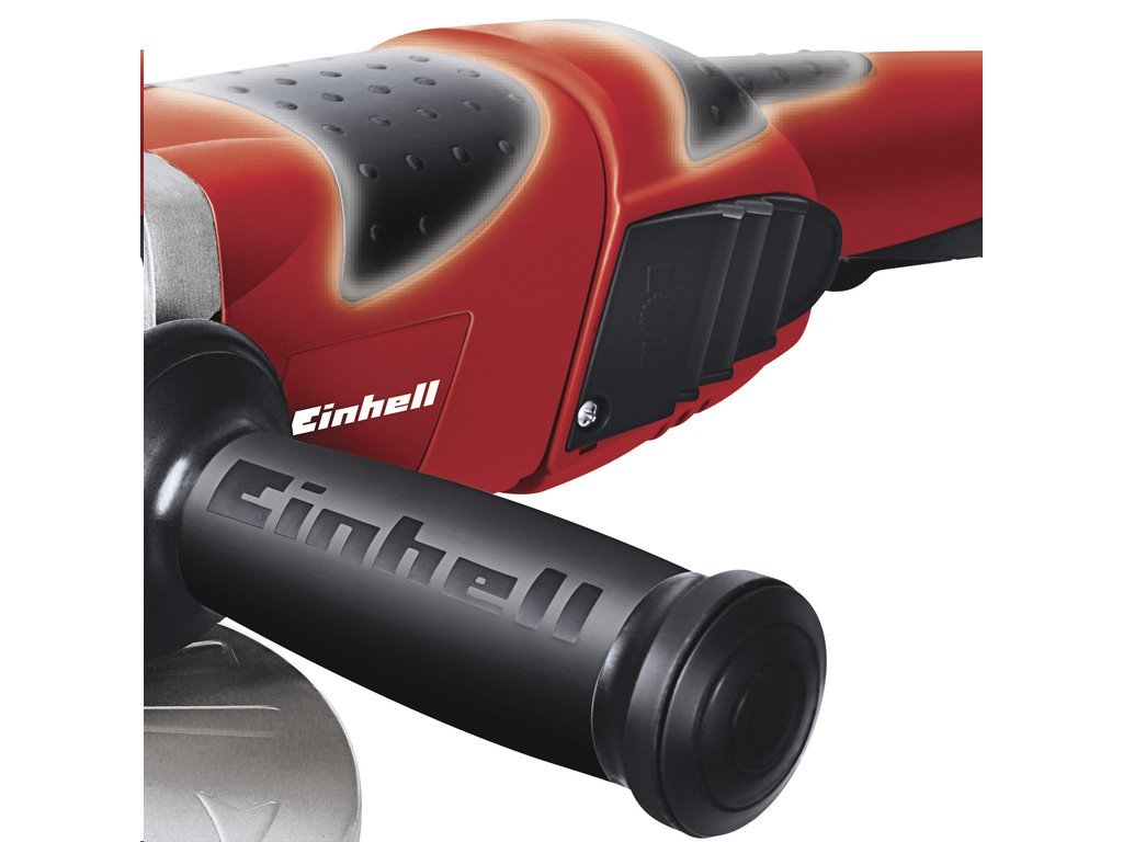 Úhlová bruska TE-AG 230/2000 Expert značky Einhell využívá pro práci rychlost 6500 min-1 a příkon 2000 W. V dělení i broušení vám bude pomáhat přídavná rukojeť, která jde nastavit do tří pozic a ergonomicky tvarovaná hlavní rukojeť s měkčeným držadlem SoftGrip.
