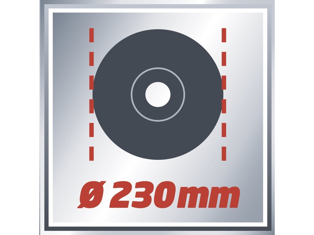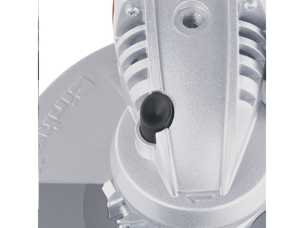 Kotouč o maximálním průměru 230 mm chrání posuvný bezpečnostní ochranný kovový kryt a snadno jej vyměníte pomocí zámku vřetena (klíč je schovaný v rukojeti). Plochá kovová hlava převodovky zamezuje rušivým vibracím při práci a zpřístupňuje těžko dosažitelná místa.