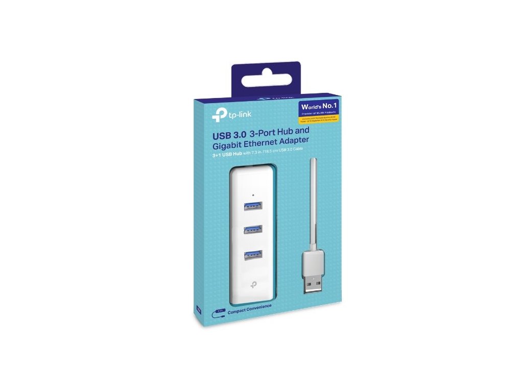 USB 3.0 to Gigabit Ethernet Network Adapter with 3-Port USB 3.0 Hub SPEC: 1 USB 3.0 Connector, 1 Gigabit Ethernet Port,
