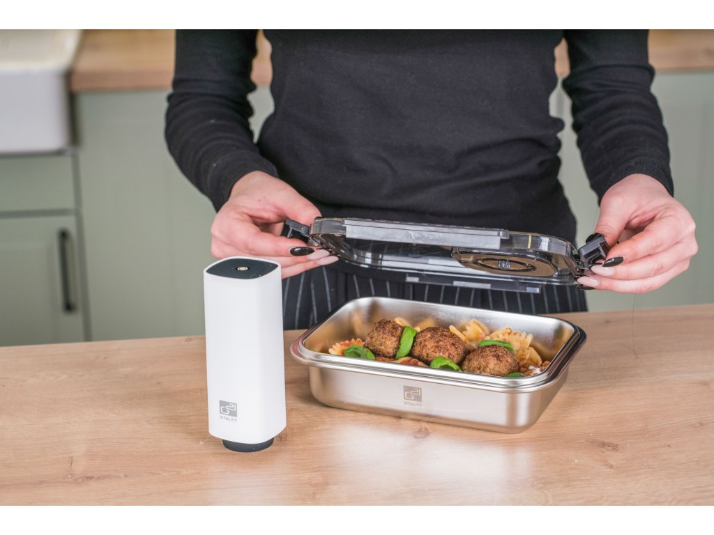 - 1x vakuovací dóza z nerezové oceli s víkem