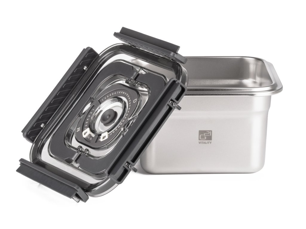 Vakuováním výrazně prodlužujete trvanlivost potravin, zachováváte jejich chuť, vůni i nutriční hodnoty. Nerezová dóza je kompatibilní se všemi vakuovačkami G21. Vakuování minimalizuje kontakt potravin se vzduchem, takže zpomaluje oxidaci a zamezuje růstu bakterií a plísní. Díky tomu si potraviny uchovávají svou přirozenou chuť, texturu i živiny mnohem déle než při běžném skladování.