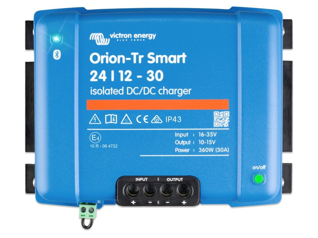 Nabíječka Orion Tr-Smart může být použita v 12 V nebo 24 V systémech a je vhodná jak pro olověné baterie, tak i pro lithiové baterie. K dispozici jsou modely až do 400 W. Pro zvýšení výstupního výkonu můžete paralelně zapojit neomezený počet jednotek. Je vhodná pro použití při okolní teplotě až do 55 °C a při plném jmenovitém výstupním výkonu až do 40 °C.