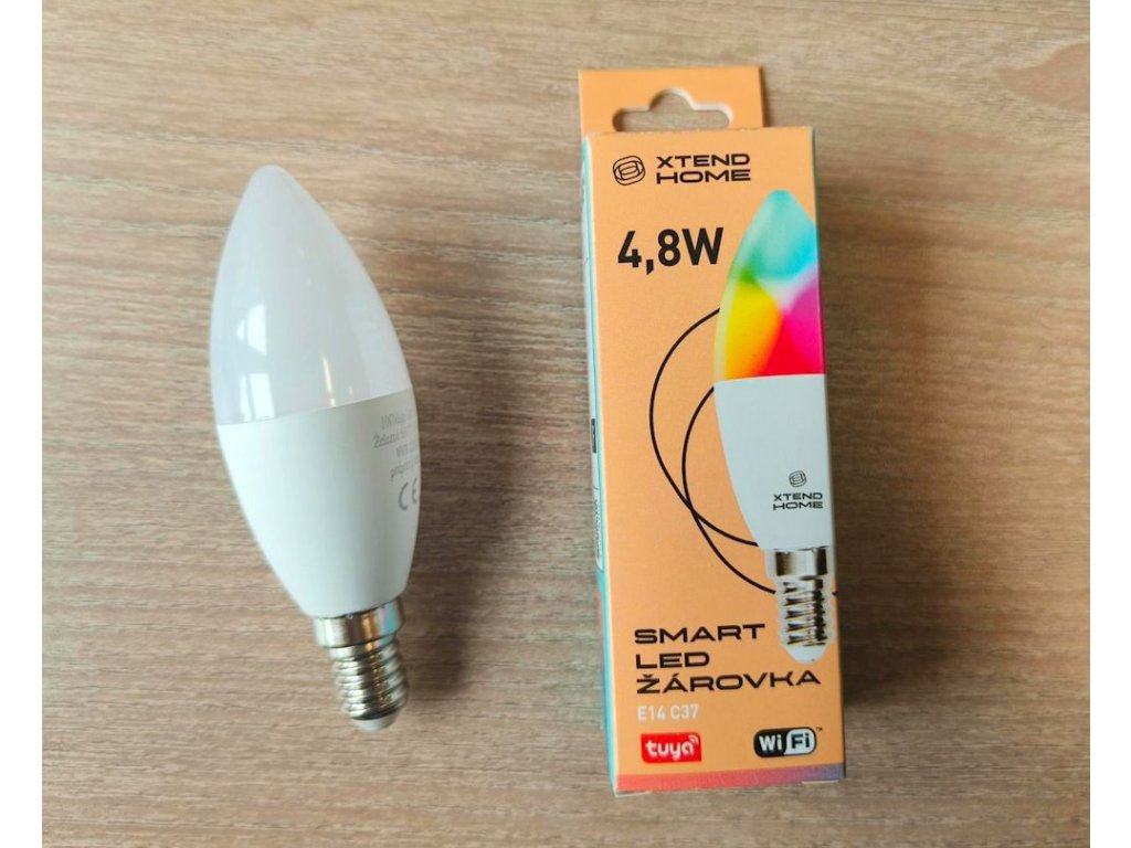 Xtend Home smart LED žárovka, E14, RGB+W, 4.8W, 450lm, barevná, stmívatelná, WiFi, Tuya