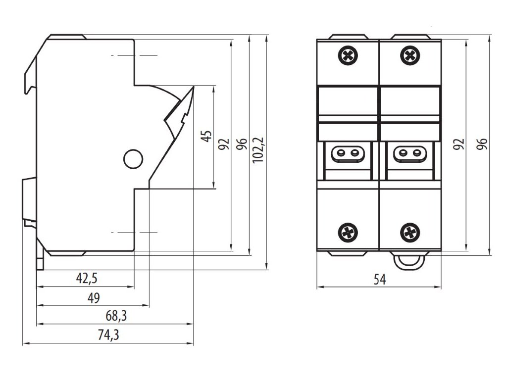 Pojistkový odpínač a zároveň pojistkový držák, který je určený pro dvě válcové pojistky (jištění polovodičů) velikosti 14 x 51 mm typu PV514 a pro dvě výkonové pojistkové vložky PV14 do 63 A (gG, aM).