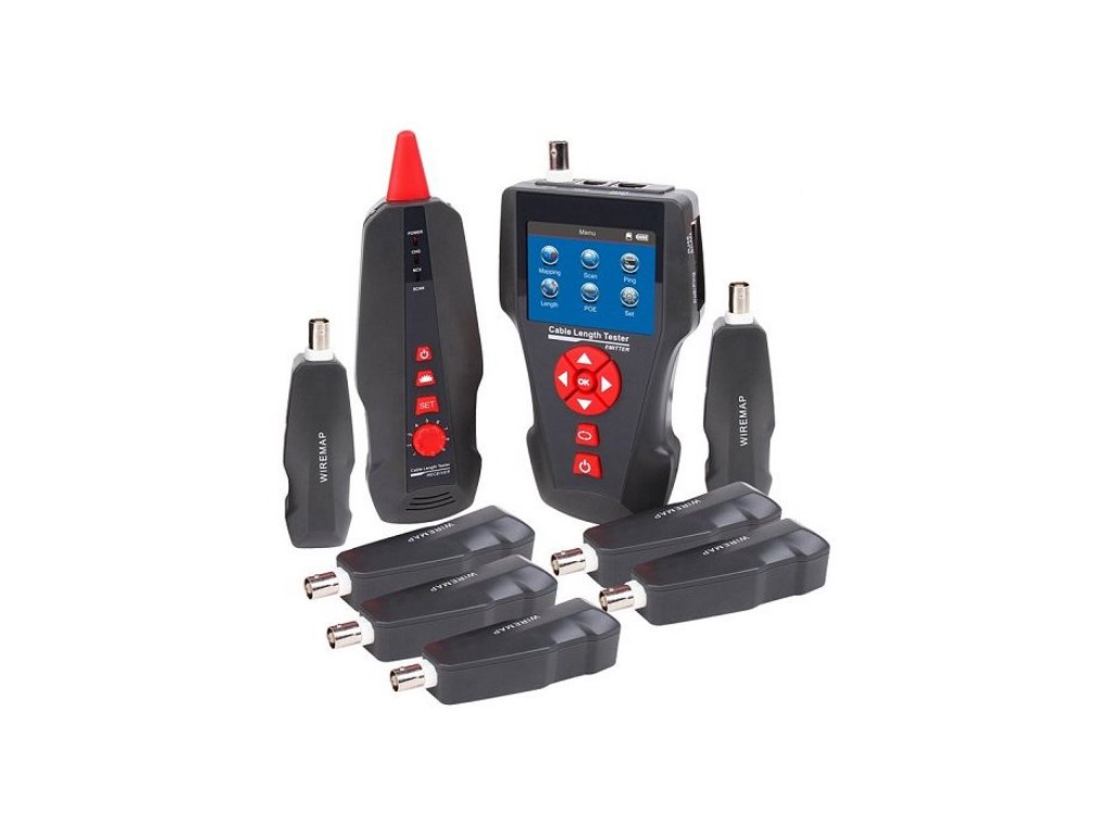 Tester UTP/STP (RJ-45), koaxiálních (BNC) a telefonních (RJ-11) vedení. Ohmické metody měření včetně rozšířených testů napájení PoE a odezvy PING.