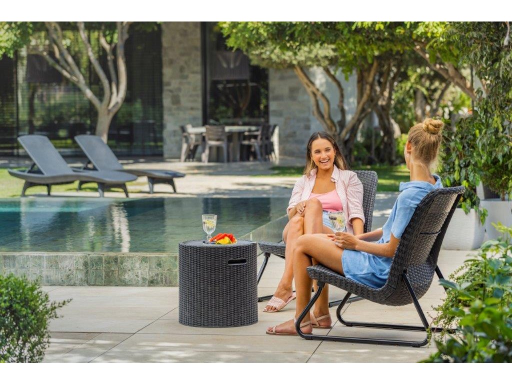 Cool Stool je velmi praktický stůl s doplňkovými úložnými funkcemi. V letních měsících využijete jeho vnitřní prostor jako chladicí box a vychladíte si oblíbené nápoje přímo na zahradní párty. Po umístění polštáře na víko získáte pohodlné sedadlo pro nečekanou návštěvu. Lisovaný plast zajišťuje odolnost vůči dešti i slunečnímu záření a zároveň umožňuje snadné čištění bez náročné údržby.