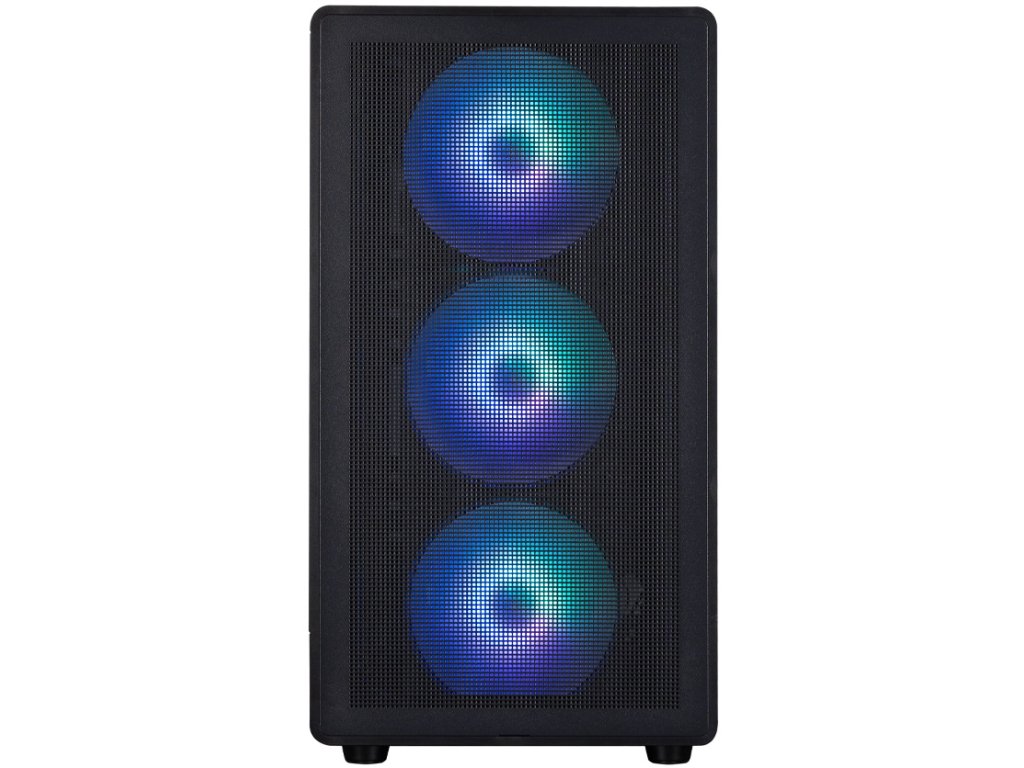 Kvalitní počítačová skříň formátu Mini Tower nabízí jednu 2,5", jednu 3,5" a jednu 2,5"/3,5" pozici pro pevné či SSD disky. Předinstalovány jsou čtyři 120 mm ventilátory s ARGB podsvícením. Na bočním panelu se nachází jeden port USB 3.0, jeden port USB 2.0, jeden port USB-C a kombinovaný audio jack. Ve skříni je dostatek prostoru pro chladič CPU do výšky až 180 mm a grafickou kartu o délce až 410 mm. Důmyslné řešení umožňuje pohodlné umístění až 360 mm dlouhého výměníku vodního chlazení na horní straně. Skříň je vybavena průhlednou bočnicí a perforovaným předním panelem. Potěší také přítomnost prachových filtrů. Skříň je dodávána bez zdroje.
