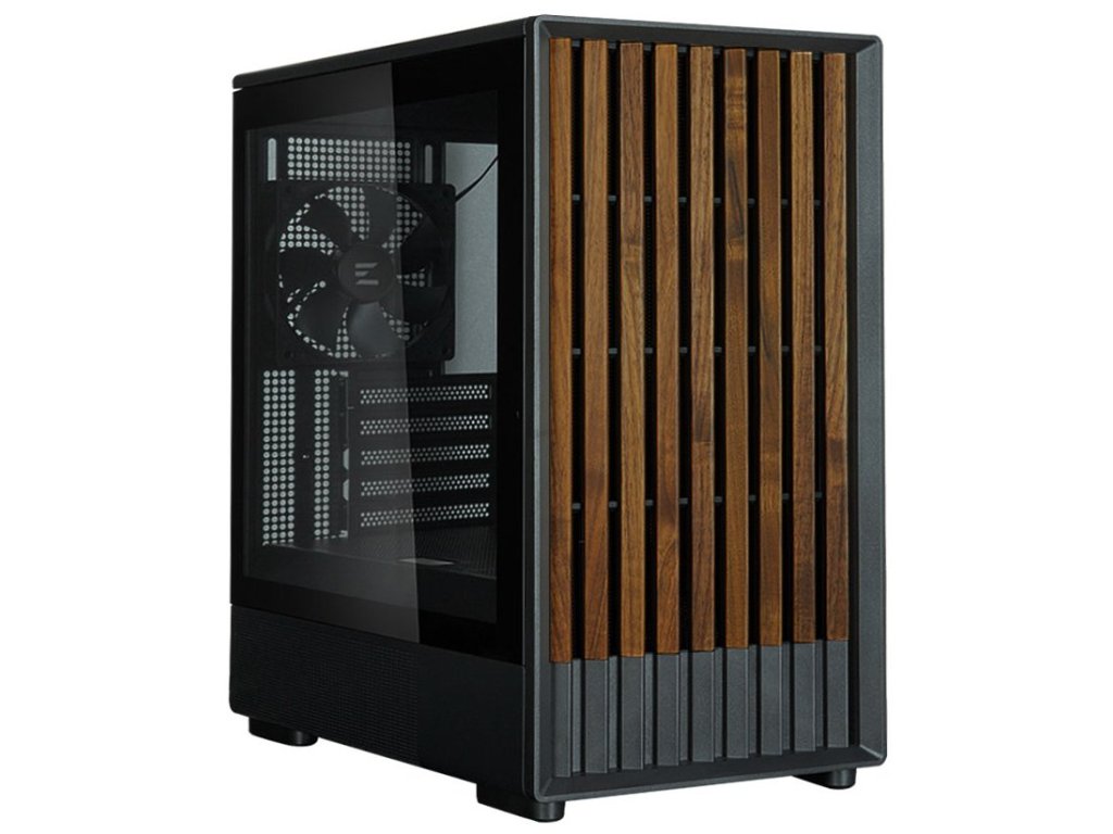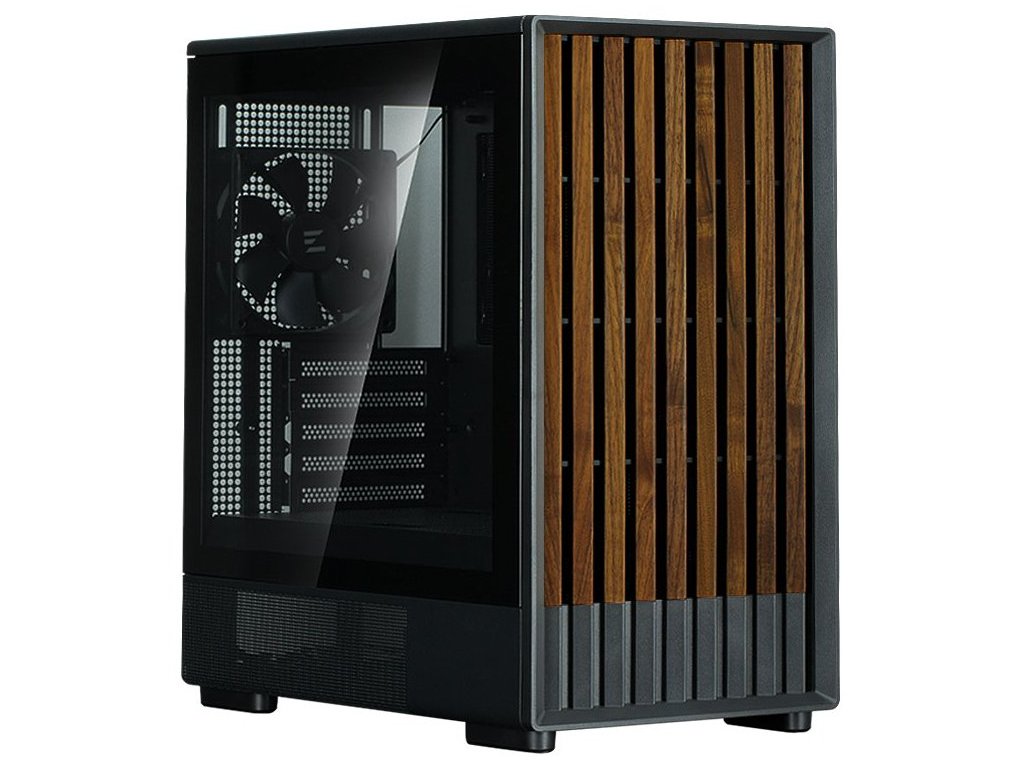 Elegantní počítačová skříň nabízí prosklenou bočnici a stylový přední panel tvořený dřevěnými prvky. Osazení komponentami je lehké díky intuitivnímu systému správy kabeláže, kabely tedy nikde zbytečně nepřekáží. Skříň je osazena třemi 120mm ventilátory. Potěší také možnost rozšíření o dalších 6 ventilátorů, magnetické prachové filtry a vestavěná podpěra grafické karty. Důmyslné řešení umožňuje pohodlné umístění až 240 mm dlouhého výměníku vodního chlazení na horní straně. Ve skříni je dostatek prostoru pro chladič CPU do výšky až 173 mm a grafickou kartu o délce až 340 mm. Na horním panelu se nachází porty USB 3.0, USB-C a kombinovaný audio port pro sluchátka a mikrofon. Skříň je dodávána bez zdroje.