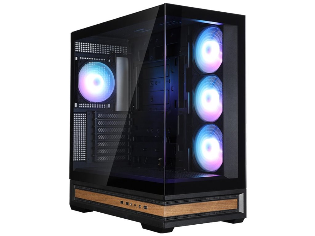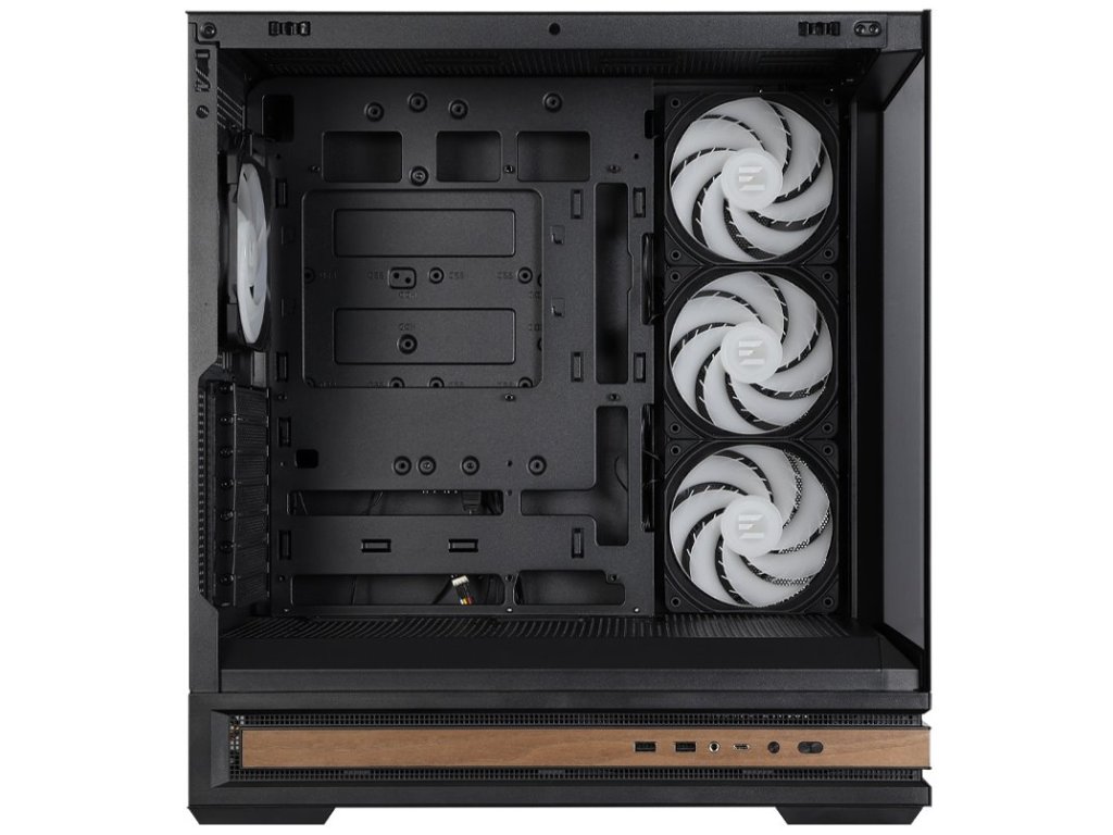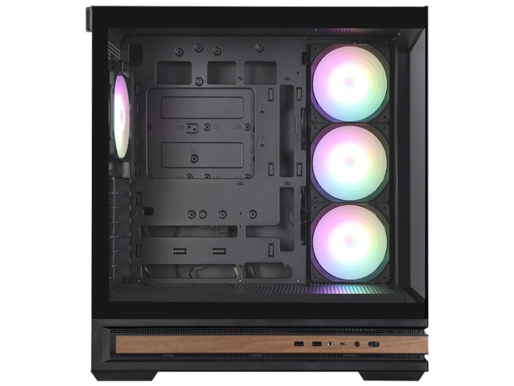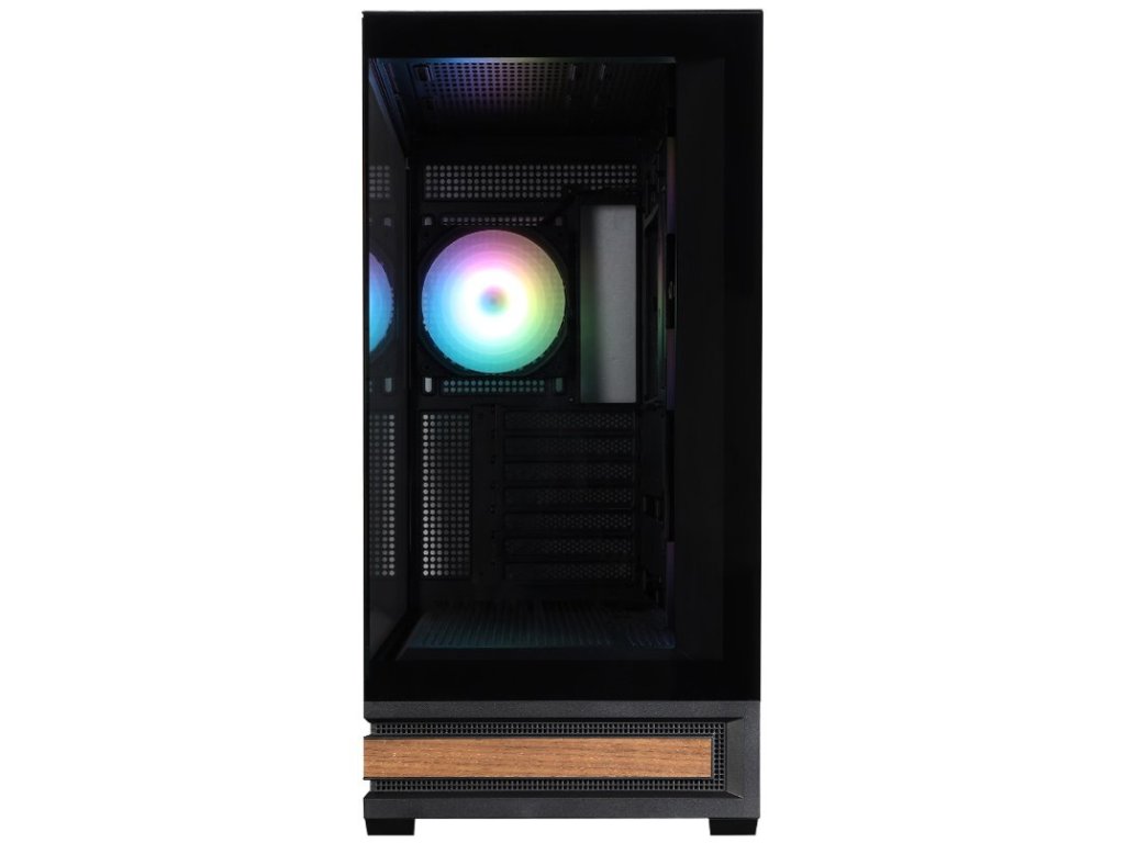 Elegantní počítačová skříň nabízí prosklenou bočnici i přední panel, prvotřídní kovovou konstrukci a stylové dřevěné doplňky. Osazení komponentami je lehké díky intuitivnímu systému správy kabeláže, kabely tedy nikde zbytečně nepřekáží. Skříň je osazena čtyřmi 120mm ventilátory s ARGB podsvícením. Potěší také možnost rozšíření o dalších 7 ventilátorů, magnetické prachové filtry, ARGB rozbočovač a otočný PCI slot pro flexibilní instalaci grafické karty (držák GPU je součástí balení). Důmyslné řešení umožňuje pohodlné umístění až 360 mm dlouhého výměníku vodního chlazení na horní nebo boční straně. Ve skříni je dostatek prostoru pro chladič CPU do výšky až 165 mm a grafickou kartu o délce až 420 mm. Na bočním panelu se nachází dva USB 3.0 porty, jeden USB-C port a kombinovaný audio port pro sluchátka a mikrofon. Skříň je dodávána bez zdroje.